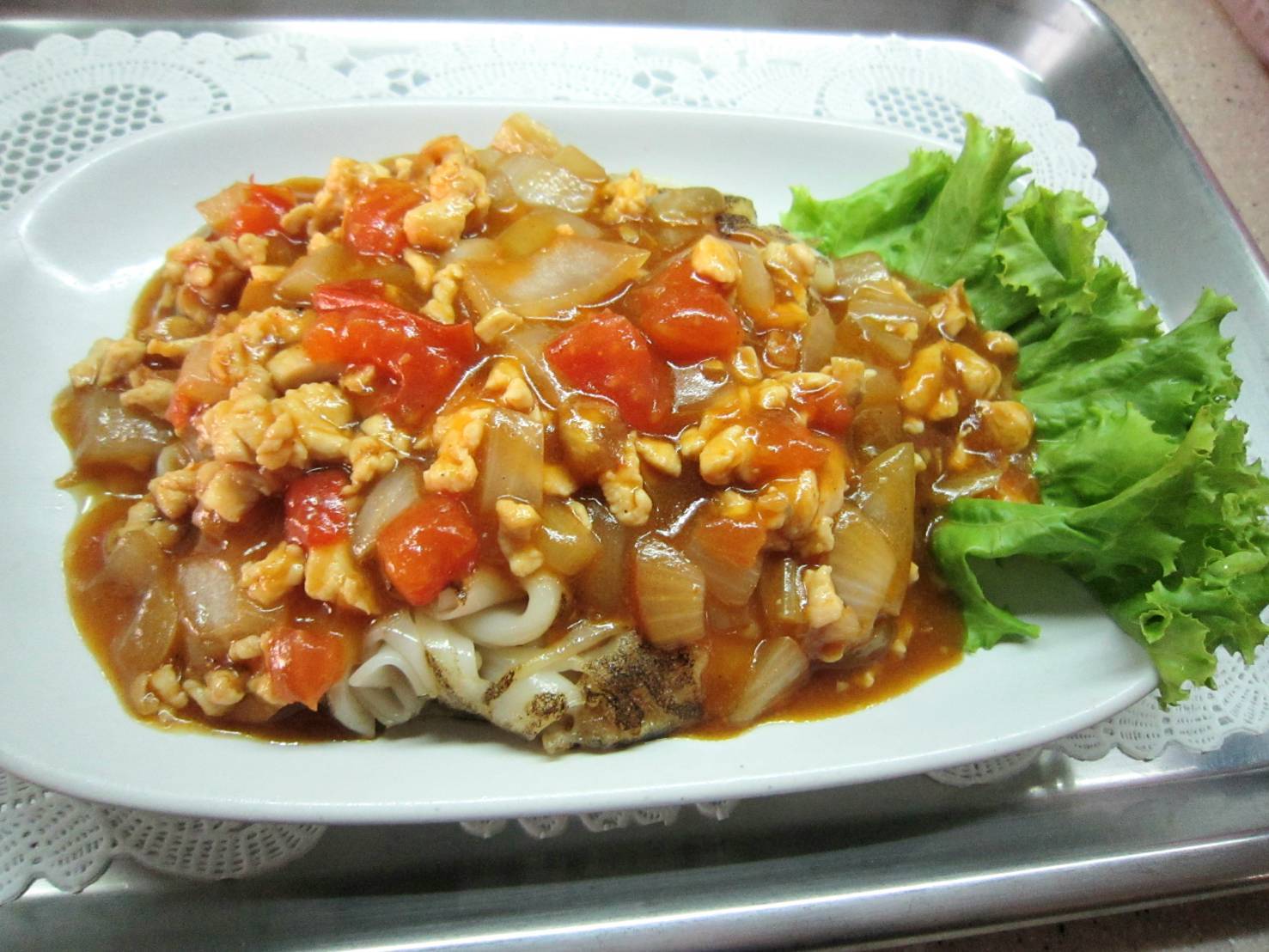 ใหญ่ราดหน้าหมูสับแบบไทยใส่ผงกะหรี่ ( 155, 310)