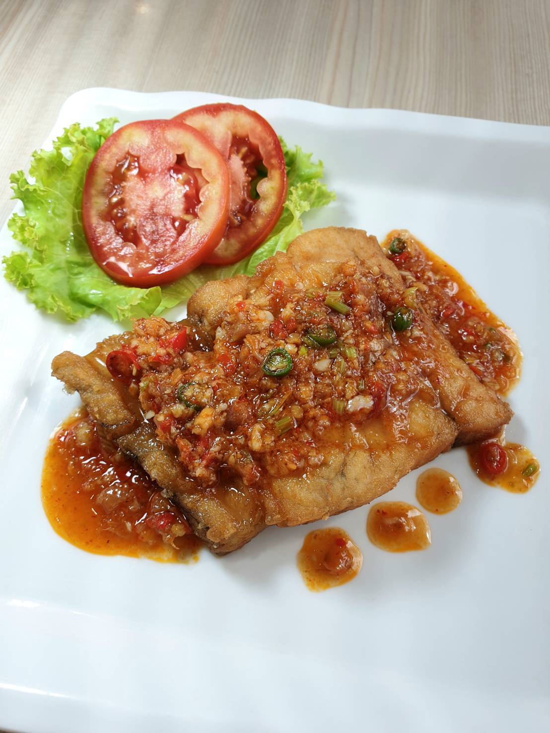 เนื้อปลากะพงราดพริก (220, 440)